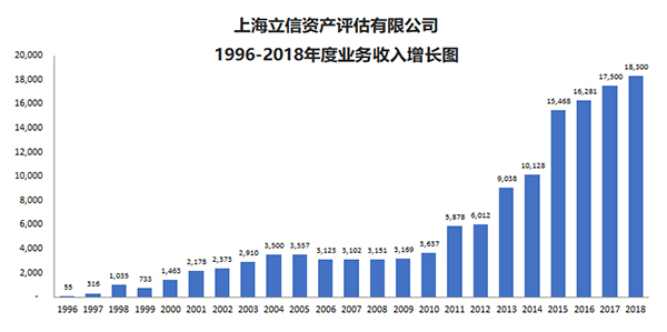 公司業務已拓展到各個領域,經營足跡已擴展到全國29個省、市、自治區,已完成了數千個評估項目。2000年,公司對強生集團的改制評估拉開了“國退民進”改制的序幕;2004年,上汽集團和港務集團整體上市評估創下了上海業內評估資產數量規模之最,奠定了立信評估完成超大型評估項目的能力。國有集團改制、上市評估、資產重組、外資收購、司法評估等,處處都有立信人的身影。多年來,公司位居國內資產評估機構收入排名前十名。2014年,公司年業務收入超過1億元,2017年達到1.75億元。